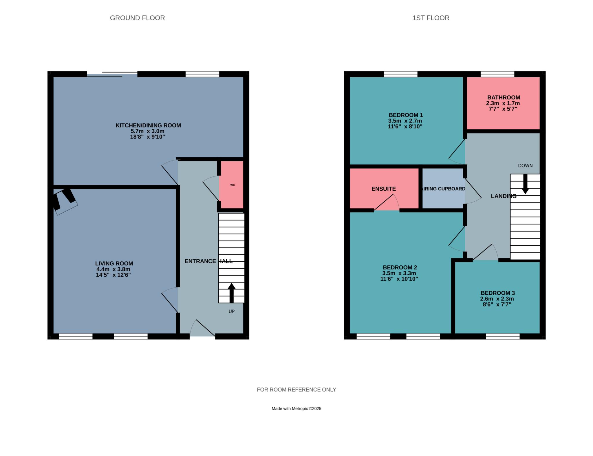 Bedroom 2: 3.3m x 3.5m.