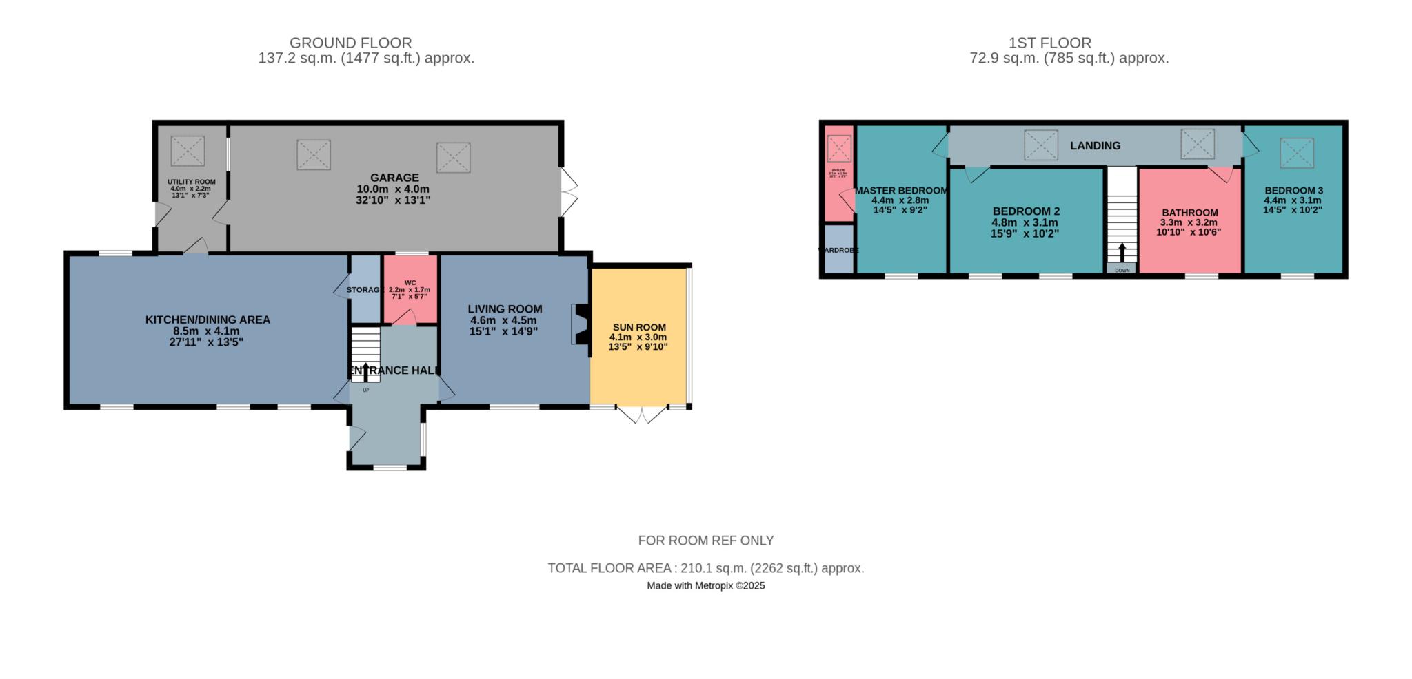 Living Room: 4.6m x 4.5m. Double sided stove.